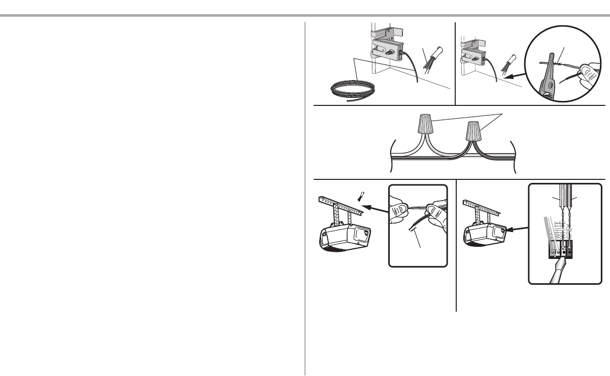 4. At the garage door opener, strip 7/16" (11 mm) of insulation from each end of the wires previously chosen