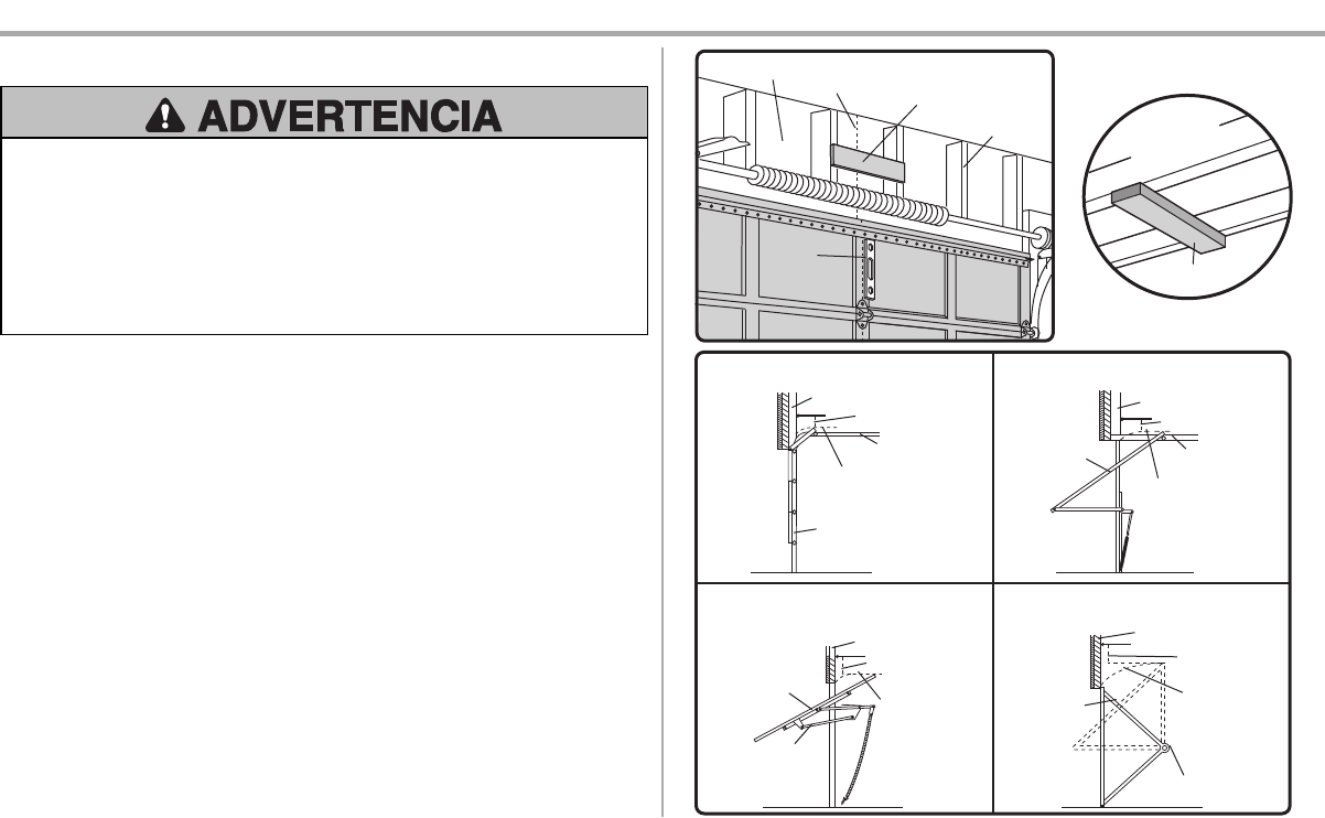 l 5 cm (2 pulg.) por encima del punto más alto para las puertas seccionales y para las puertas de una pieza