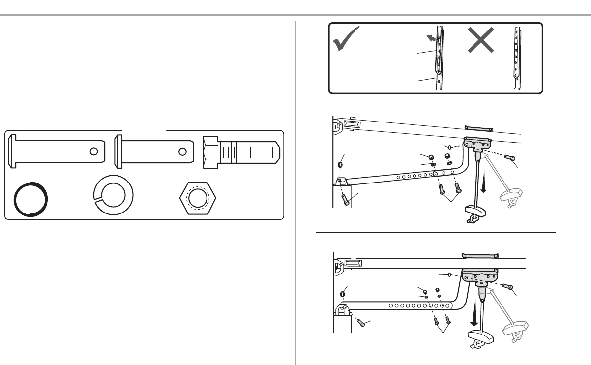 3. Acople el brazo recto de la puerta a la ménsula de la puerta usando el pasador de chaveta. Asegúrelo con