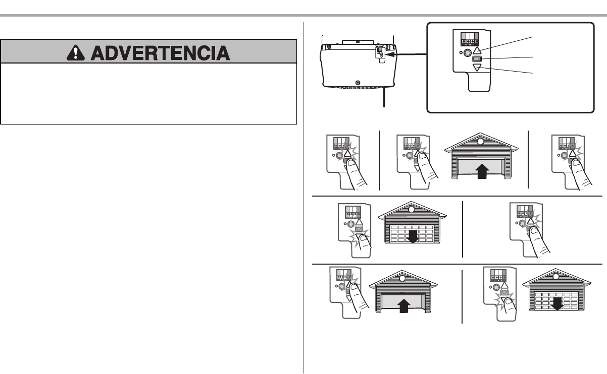 Durante la programación, los botones de arriba y abajo pueden utilizarse para mover la puerta cuando sea necesario.