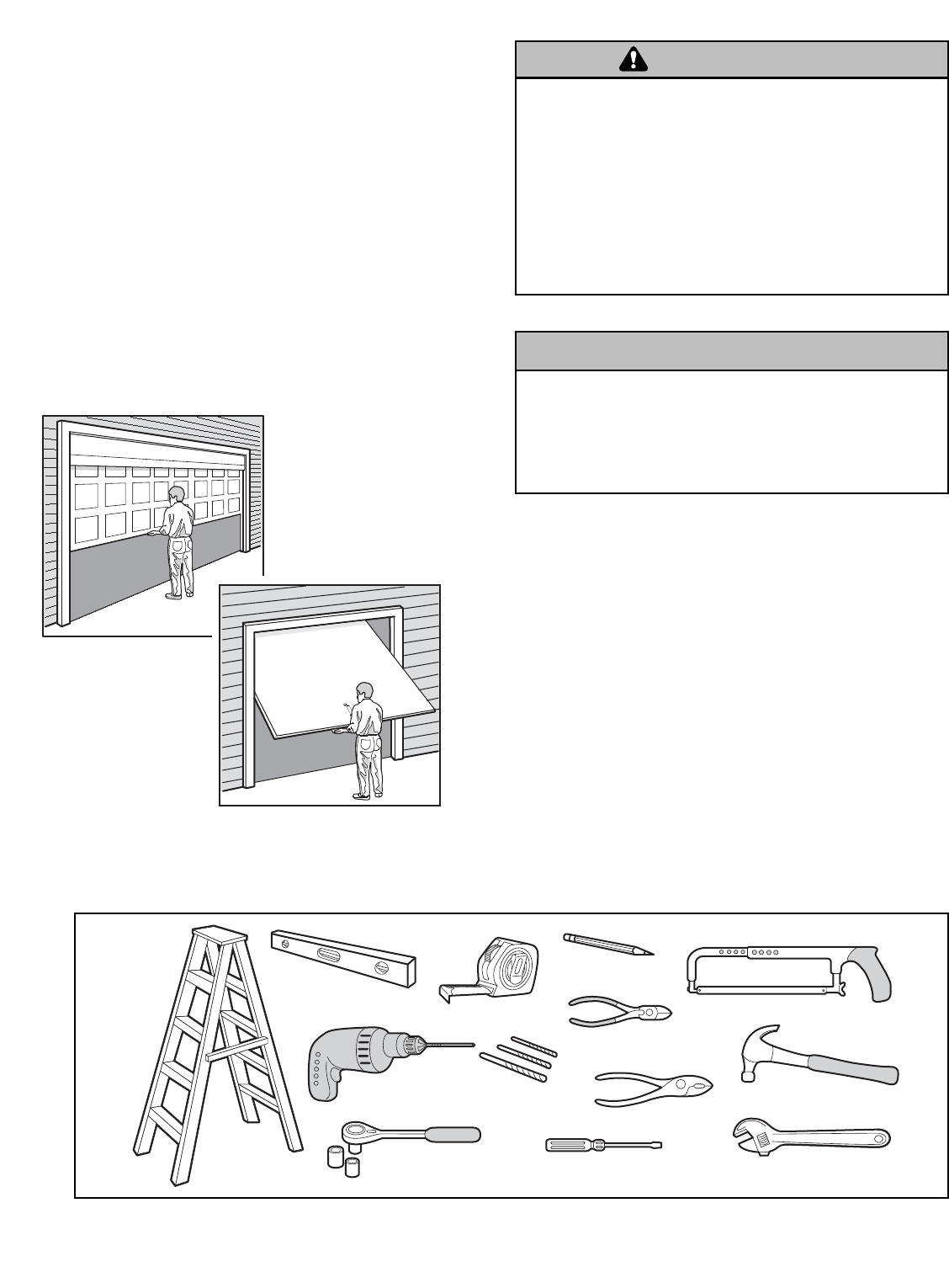 • ALWAYS call a trained door systems technician if garage