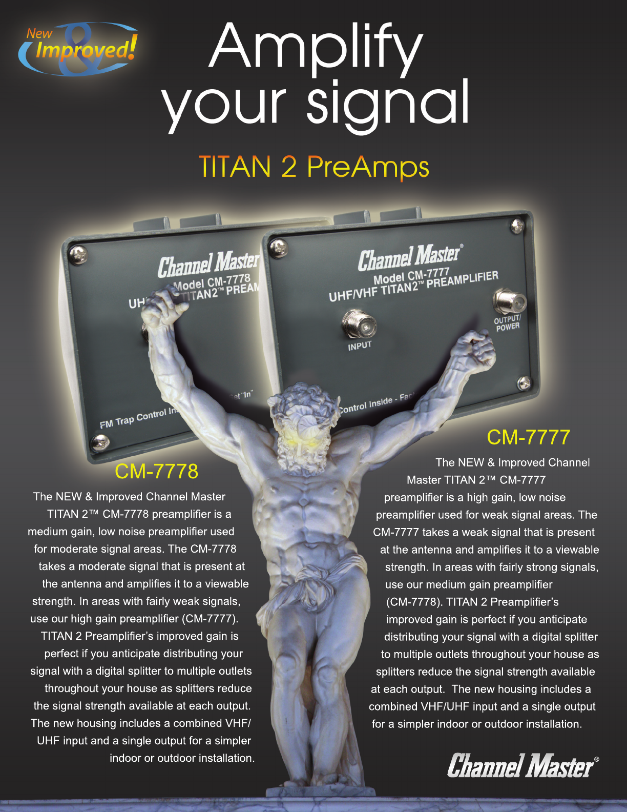 Titan 2 High Gain Preamplifier Mast Mounted TV Antenna Signal Booster