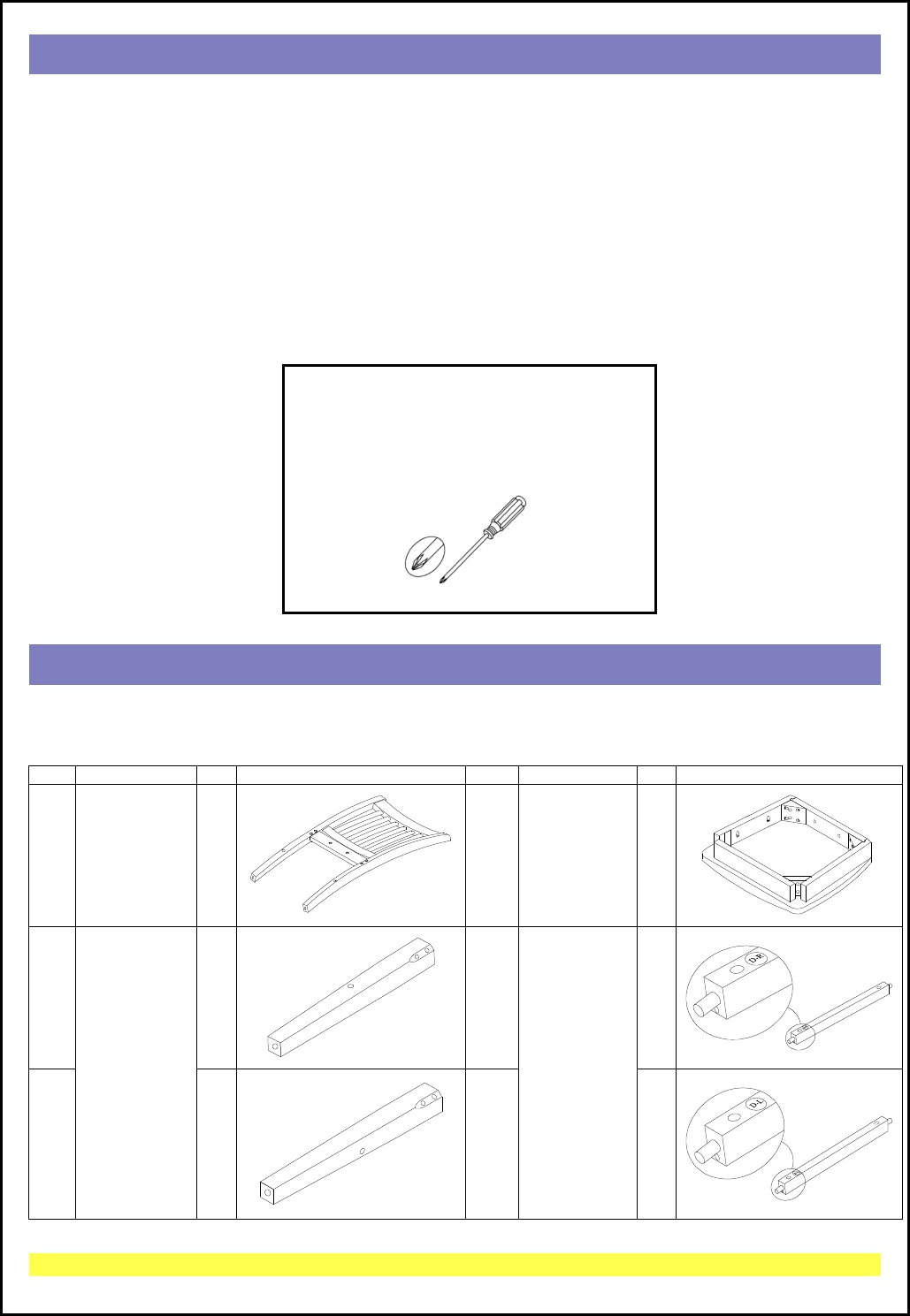 Please separate, identify, and count all parts and metal hardware. Compare with part list to be sure all parts are present.