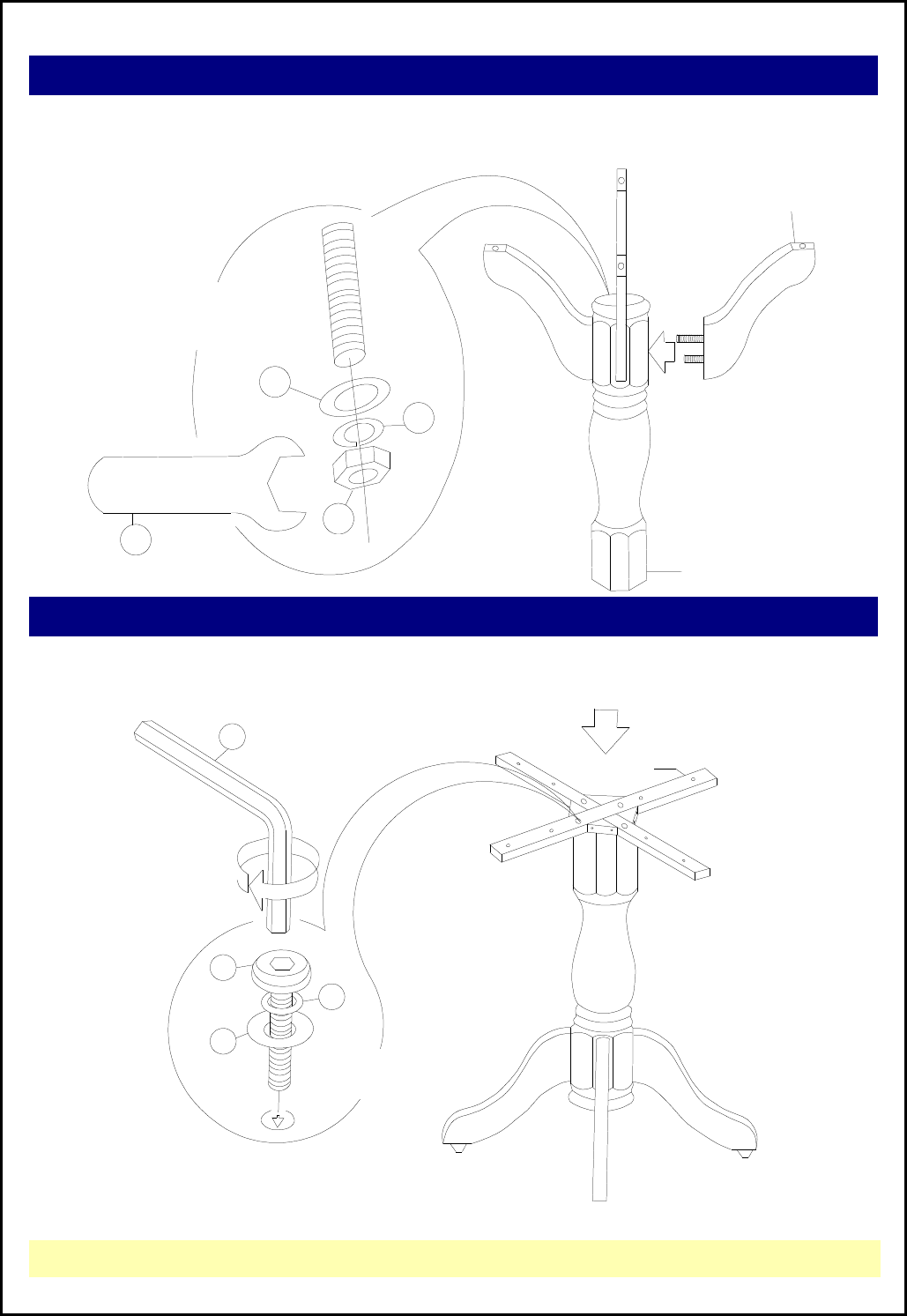 Put the cross piece (D) on top of the pedestal, and attach with bolts (7), washers (5), (6). Tighten with