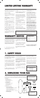 LIMITED LIFETIME WARRANTY This warranty gives you specific legal rights, and you may also have other rights which vary from state to state. WHAT IS COVERED Except as specified below, the manufacturer of this product warrants it to be free of all defects in workmanship and material. WHAT IS NOT COVERED BY THIS WARRANTY 1. All costs of removal or reinstallation of the fan. 2. Damage resulting from failure to follow instructions contained herein. 3.