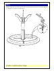 STEP 1 Attach legs (B) to the pedestal (C) with washers (1), (2) and nuts (3). Tighten with wrench (4). B x4 1 2 3 4 C STEP 2 Put the cross piece (D) on top of the pedestal, and attach with bolts (7), washers (5), (6). Tighten with Allen key (8).