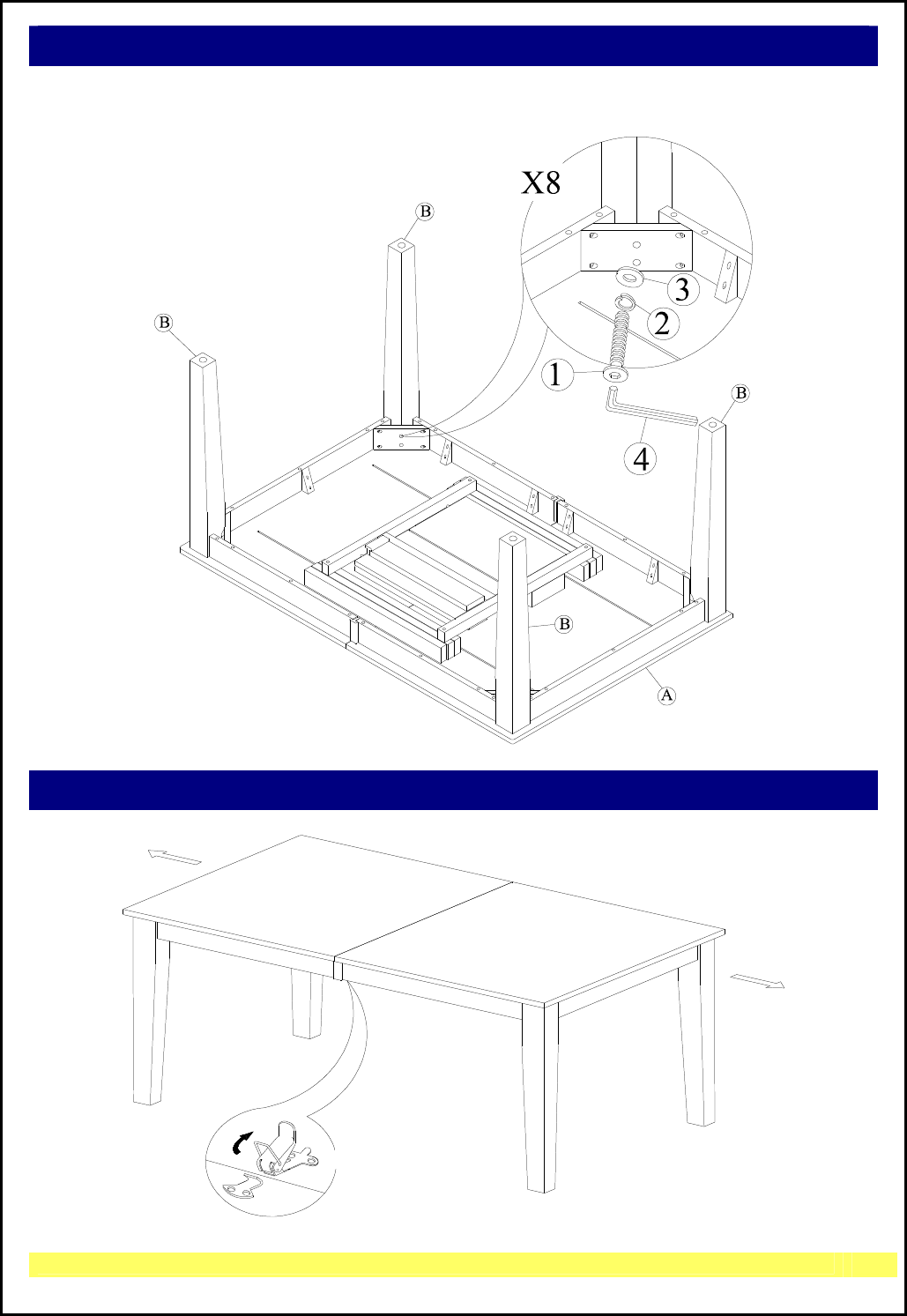 Place legs (B) in position as shown below. Use bolts (1) and washers (2),(3) to attach legs, tighten with the Allen