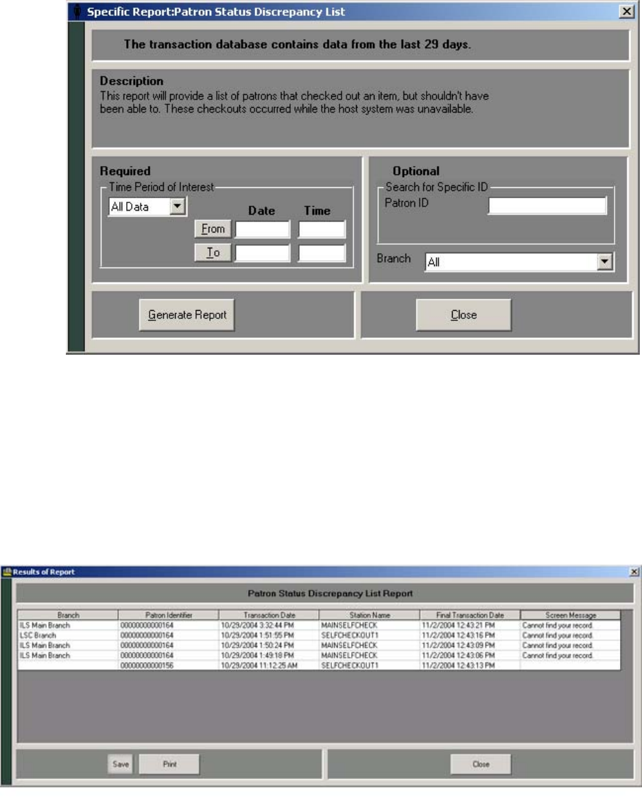 In the Specific Report: Patron Discrepancy List window, enter the time period for