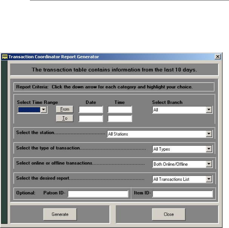In the Transaction Coordinator Report Generator window, enter the time period for
