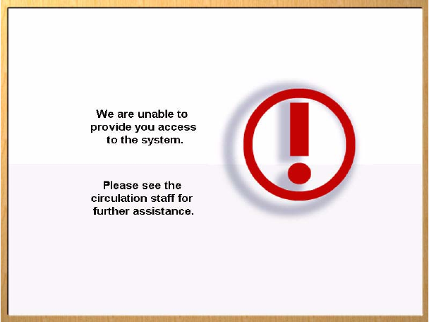4 If you have not been authorized, the Patron Identification Failure window appears.