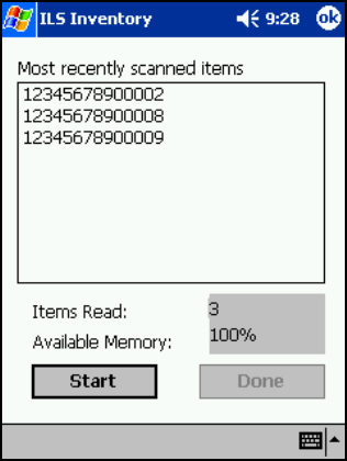 Once you begin scanning, the following information displays in the ILS Inventory