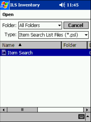 Ensure that Item Search List Files (*.psl) is selected as the type, using the down