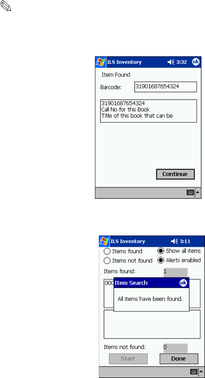 3 When a barcode is found; the barcode, shelf location, and title of the item (if all