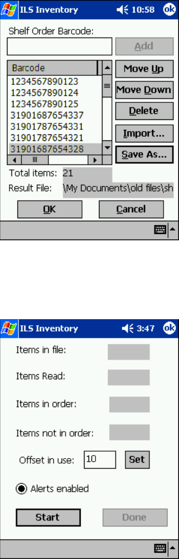 4 Tap OK. You are taken to the ILS Inventory window.