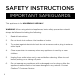 SAFETY INSTRUCTIONS IMPORTANT SAFEGUARDS WARNING: This appliance has a polarized plug (one blade is wider than the other). This plug is intended to fit into a polarized outlet only one way. If the plug does not fit fully into the outlet, reverse the plug. If it still does not fit, contact a qualified electrician. Do not attempt to modify the plug in any way or force it into the outlet. This could result in injury or electric shock.