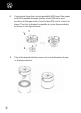 4. Unplug and clean the churning paddle (#4). Insert the upper end of the paddle through the top cover (#2) hole, and buckle into the gear hole of control box (#1) until it clicks into place. The click indicates the paddle is correctly assembled, as shown in the figure below: 1 2 4 5.