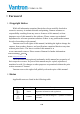 VT-HMI-156-TEL 1.3 Statement It is recommended to read and comply with this manual before operating 15.6-inch Computer which provides important guidance and helps decreasing the danger of injury, electric shock, fire, or any damage to the device. 1.4 Disclaimer Vantron assumes no legal liability of accidents resulting from failure of conforming to the safety instructions. 1.