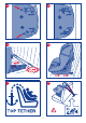 RU Инструкция ВАЖНОЕ ПРИМЕЧАНИЕ: Крепление с помощью автомобильного трёхточечного ремня безопасности. 1. Данное приспособление для безопасности ребёнка “универсального” типа сертифицировано в соответсвии с Нормой ЕСЕ R44/04 и совместимо с большинством автомобильных сидений, но не со всеми. 2.