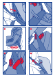 SIGURNOST DJETETA! Putevi kojima prolazi sigurnosni pojas označeni su na auto-sjedalici oznakama crvene boje. OPREZ! Ove upute se odnose, kako tekstom, tako i crtežima, na ugradnju na stražnjem desnom sjedalu. Prilikom ugradnje na nekim drugim sjedalima, postupiti istim slijedom postupaka: 1. Postaviti auto-sjedalicu na odabrano mjesto u vozilu. OPREZ! Provjeriti jesu li umetnuti neki predmeti između auto-sjedalice i sjedala vozila ili auto-sjedalice i vrata vozila. 2.