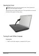 Opening the Cover CAUTION: Be gentle when opening and closing the cover. Opening it vigorously or slamming it shut could damage the computer. Open the top cover by lifting up the cover. You can tilt the cover forward or backward for optimal viewing clarity. Turning On and Off the Computer Turning On 1. Make sure that the computer is connected to AC power.