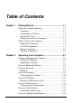 Table of Contents Chapter 1 Getting Started ................................................... 1-1 Getting the Computer Running ............................................ 1-2 Unpacking ........................................................................ 1-2 Connecting to AC Power ................................................. 1-2 Opening the Cover ........................................................... 1-4 Turning On and Off the Computer ...................................