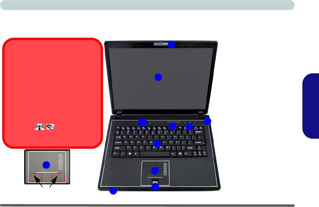 Carte du système : Vue de face avec l’écran LCD ouvert (Modèle B) - 95