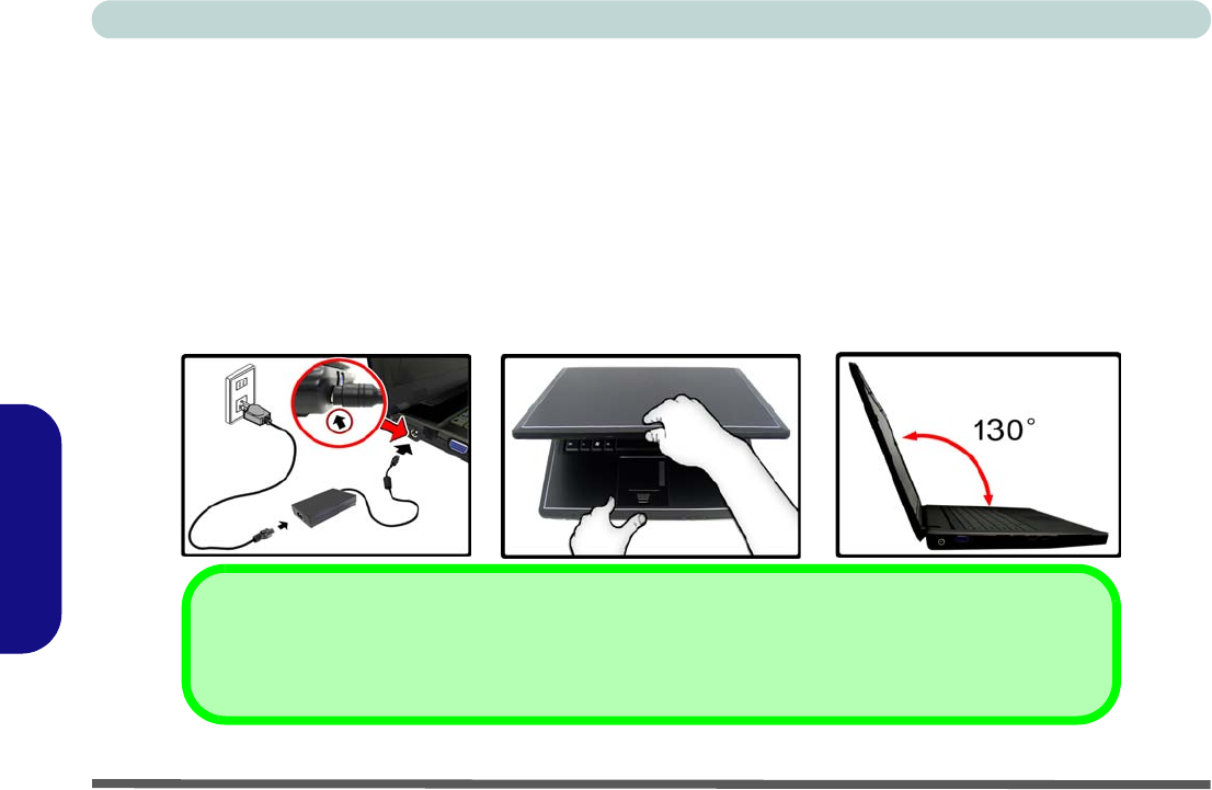 Figura 1 - Abrir la tapa/LCD/ordenador con el adaptador AC/DC enchufado