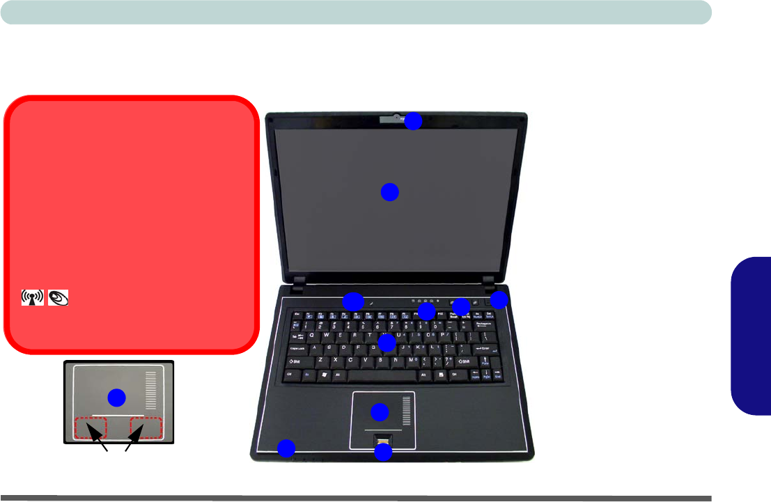 Mapa del sistema: Vista frontal con panel LCD abierto (Modelo B) - 137
