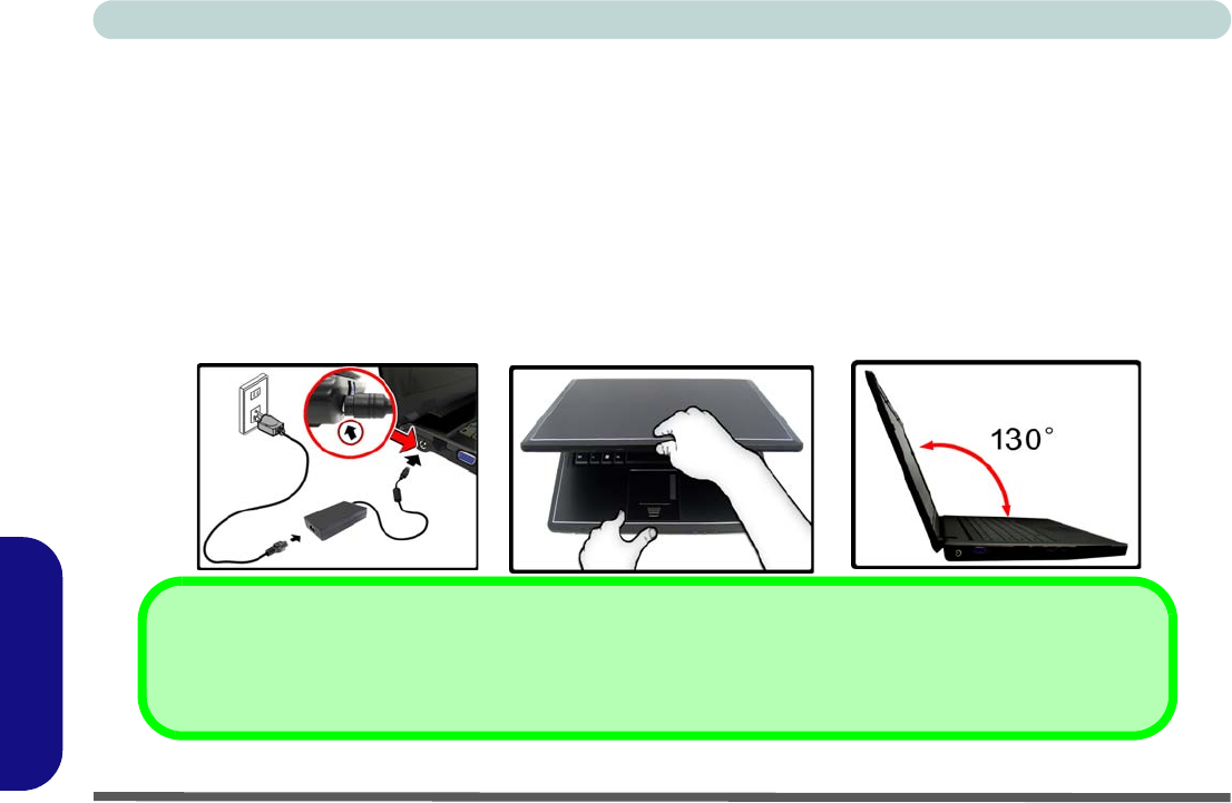 Figura 1 - Apertura del coperchio/LCD/Computer con adattatore AC/DC collegato