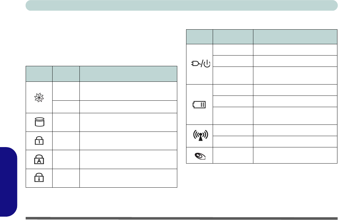 I due gruppi di indicatori LED (Indicatori LED di stato e