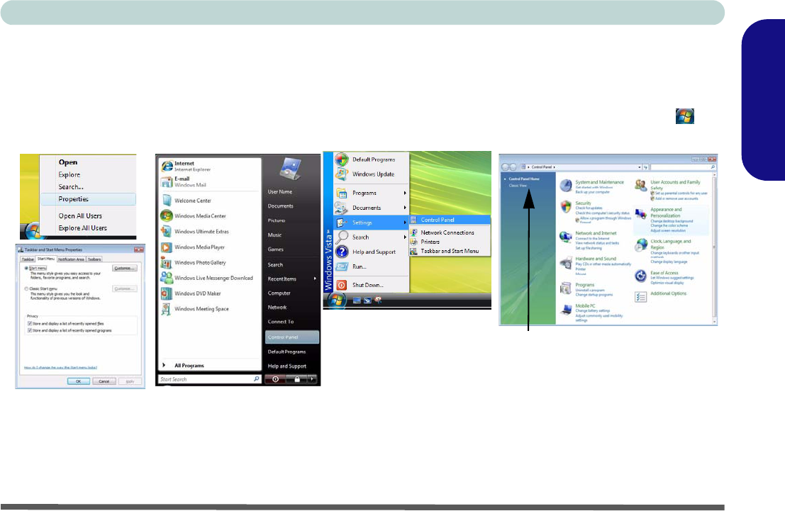 - Menu Démarrer & Panneau de configuration de Windows Vista