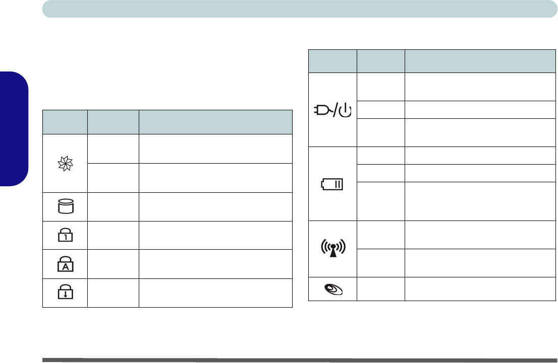 Die zwei LED-Anzeigegruppen (LED-Statusanzeigen und