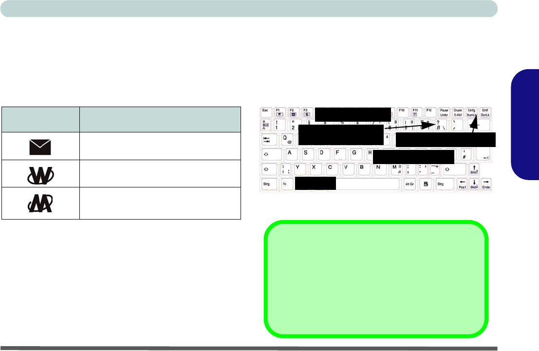 gedrückt werden. Diese Sonderzeichen können nur mit der