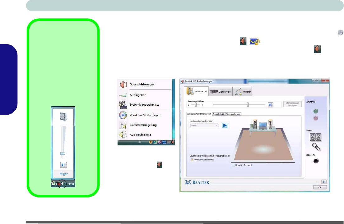 Realtek HD Audio Manager -Symbols / in der Taskleiste/Systemsteue-
