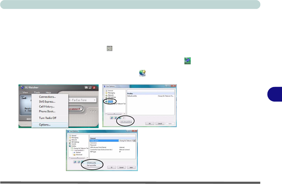 4. Click Profiles and then click the Add new profile button , and select WWAN