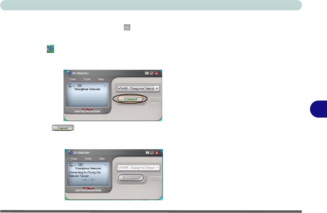 Programs/All Programs > Sierra Wireless > 3G Watcher), or by clicking the