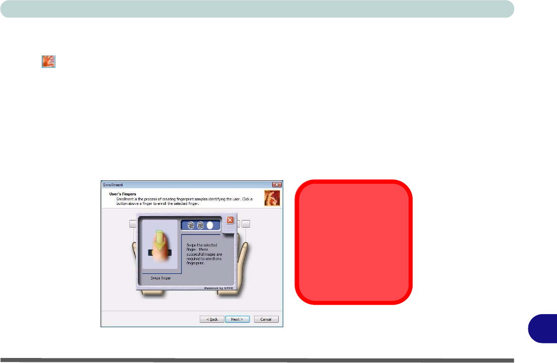 1. Click Start > Programs/All Programs > Protector Suite QL > User Enrollment, or double click the taskbar
