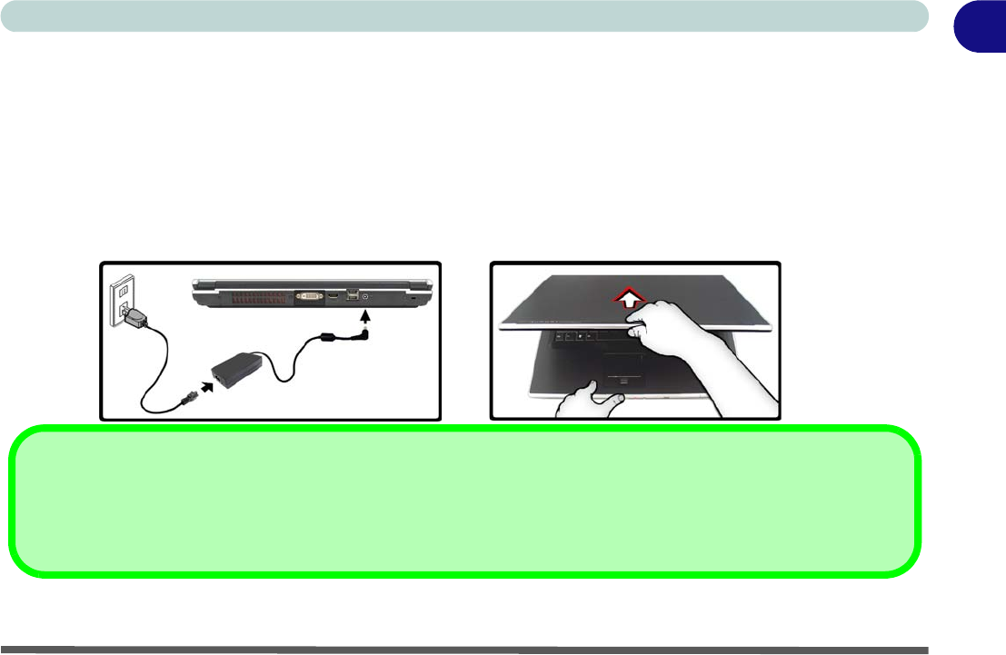 Figure 1 - 1 - Opening the Lid/LCD/Computer with AC/DC Adapter Plugged-In