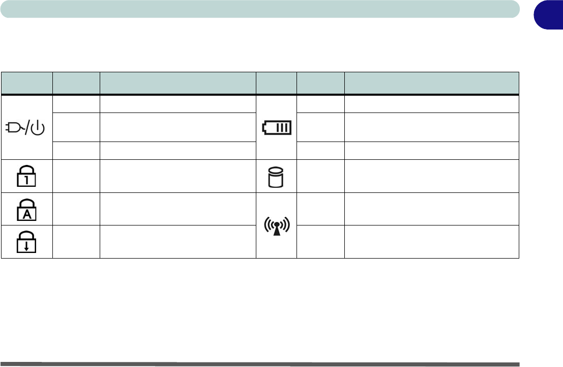 The LED indicators on the computer display helpful information about the current status of the computer.