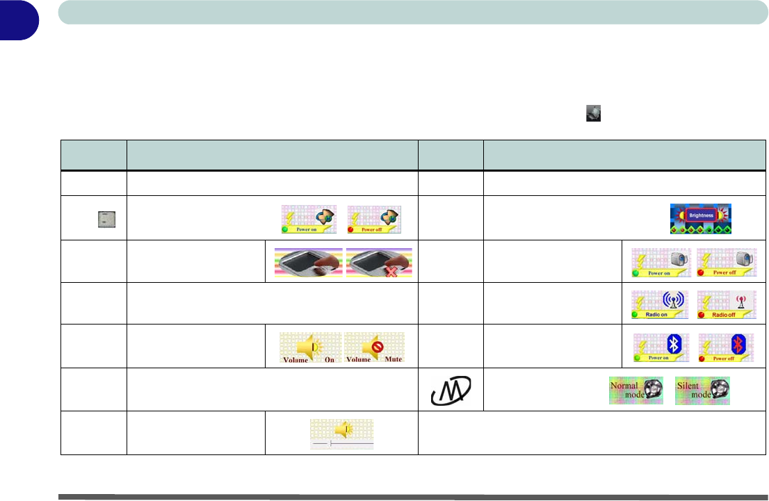 Table 1 - 4 - Function/Hot Key Combo Indicators