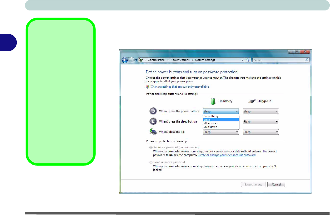 The power/sleep button (Fn + F4 key combo) and closed lid may be set to send the