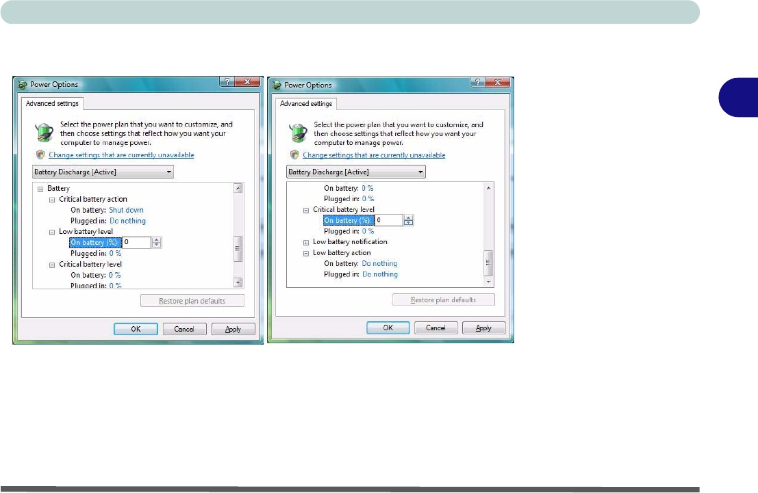 • Critical battery action (Plugged in) = Do Nothing