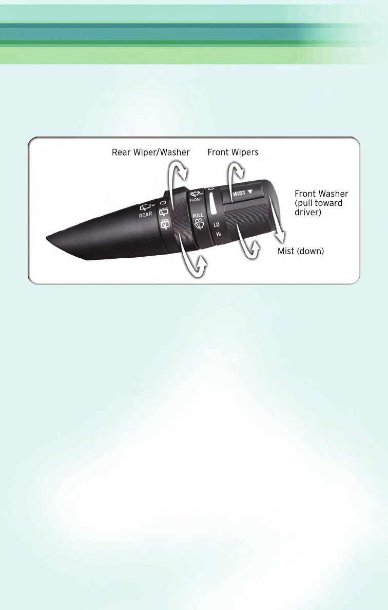 • Rotate the center portion of the lever forward to the first detent for rear wiper