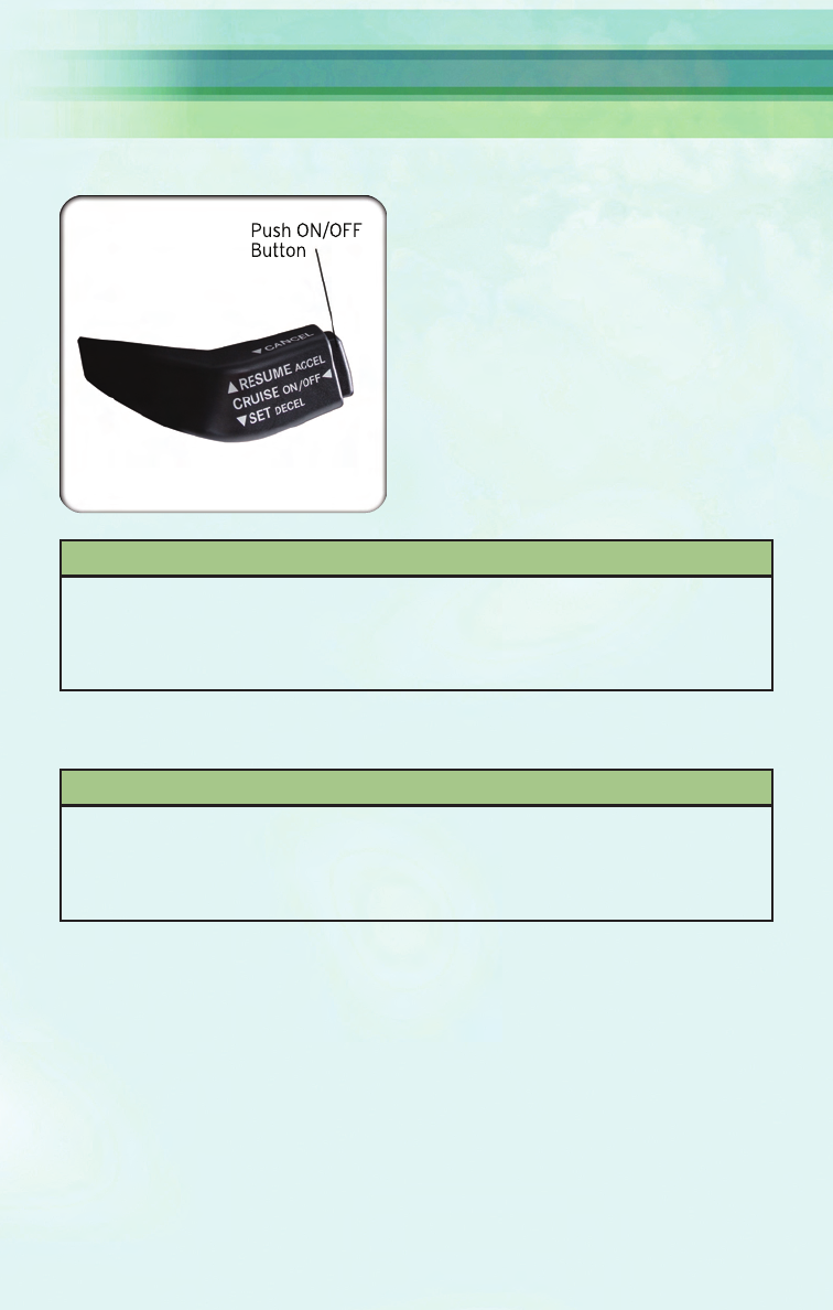 • Push the ON/OFF button to turn the system off and erase the set speed memory.
