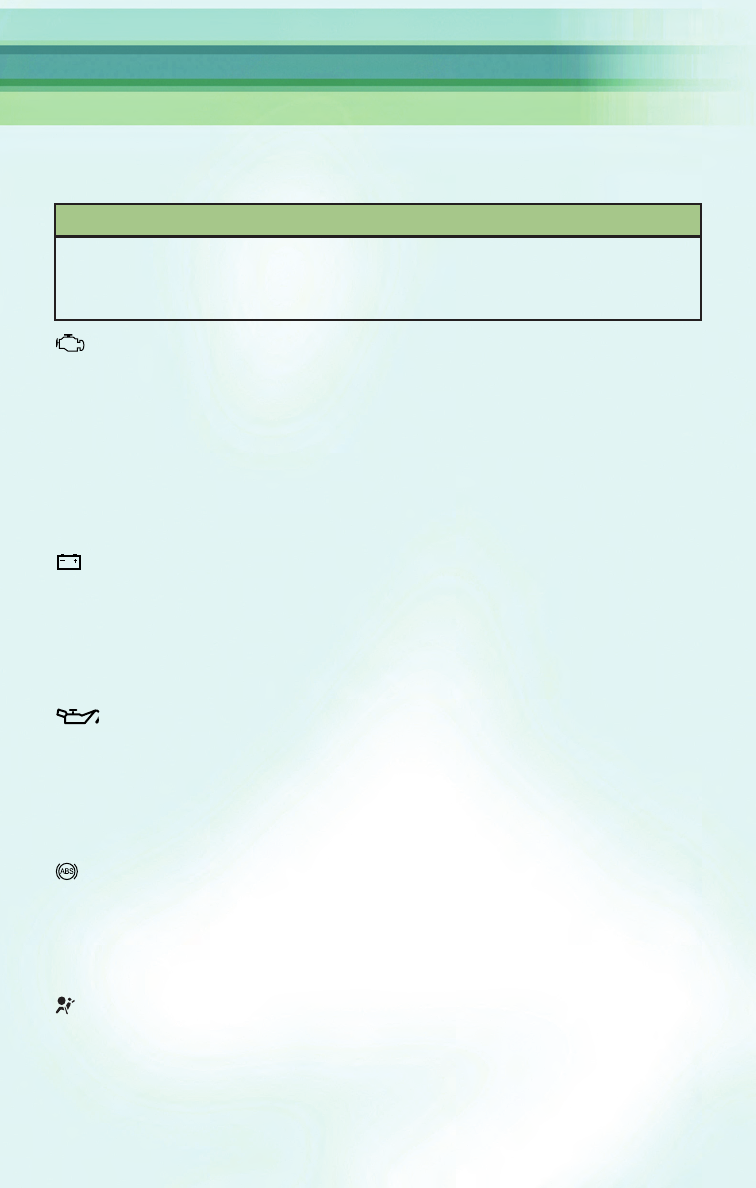 • This light indicates low engine oil pressure. If the light turns on while driving, stop
