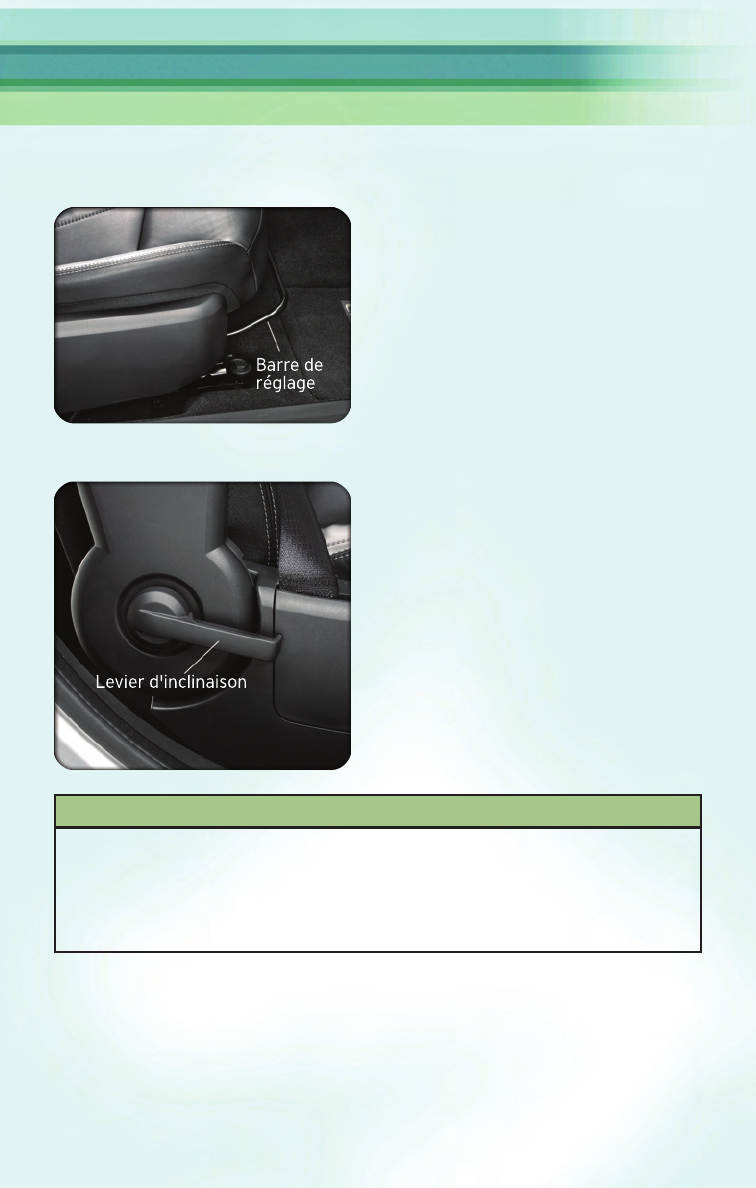 mortelles. Utilisez la manette de réglage d’inclinaison du siège seulement lorsque