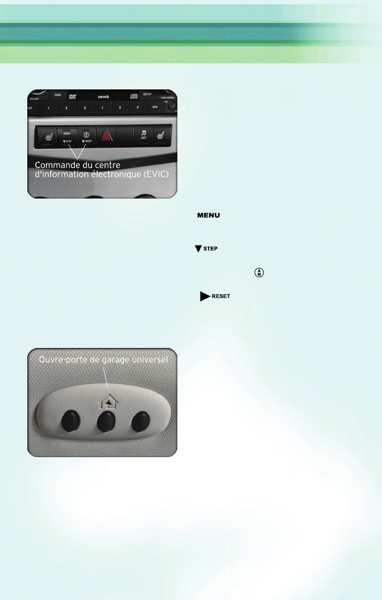 fonctions de l’ordinateur de bord, des réglages personnalisés ou pour revenir à