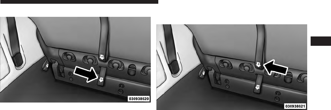 4. Pull release strap marked “3” to release the anchors. 5. Pull release strap marked “4” and tumble the seat