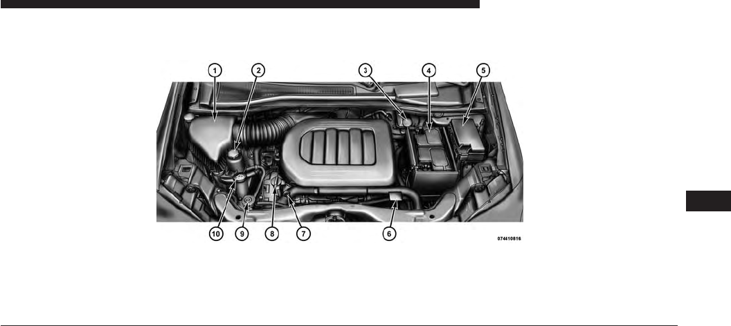 2 — Power Steering Fluid Reservoir 7 — Engine Oil Dipstick