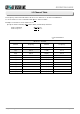 OPERATION GUIDE 2.3 Channel Table The frequency channels that the MU-D1-R can use are channels 1 to 20 in the 915 MHz band. To set the channel, use the command format ‘@CH + channel number’. Example: Set channel 15 as the channel to use. Specify the channel following ‘@CH’ with 2 ASCII (hexadecimal) characters. @CH 0F CRLF *CH = 0F CRLF Control command: Control response: * MU-D1-R : Default channel 915 MHz Channel Frequency Channel Frequency Dec. (Hex) MHz Dec. (Hex) MHz 1(01) 905.